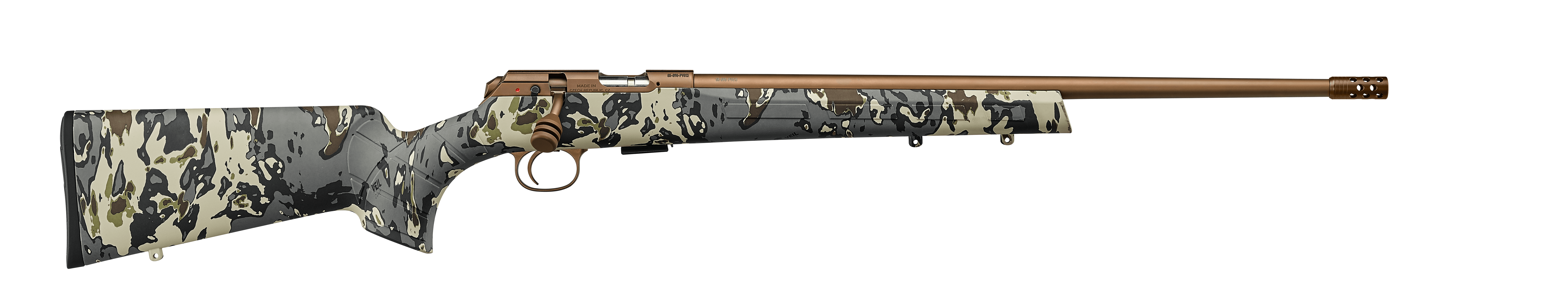 20 Hüvelykes, Bronzbevonatos Cső: A könnyű profilú, 20 hüvelyk (508 mm) hosszú cső tökéletes egyensúlyt teremt a kezelhetőség és a pontosság között. A lapos bronz felületkezelés tovább redukálja a fegyver láthatóságát a természetes fényviszonyok között. A cső, a zártest és a zárgomb PVD bevonata extrém kopás- és korrózióállóságot biztosít, garantálva, hogy a fegyver bírja a terep és az időjárás viszontagságait.