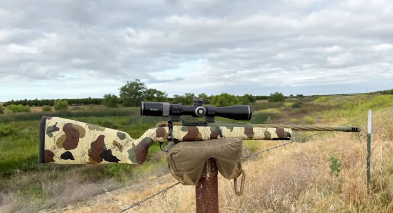 A kedvenc lőállásom ezzel a puskával az állva, egy állvány tetején lévő lőzsákkal megtámasztva. A lapos aljú elülső vég szépen befészkeli magát a zsákba, és a csőcsatorna mellett van elég perem ahhoz, hogy a hüvelykujjam megragadja és rácsípje az elülső végét a táskára. A lőtéren ebből az álló helyzetből, ha a szél nem túl sportos, megbízhatóan eltalálok 1,5-MOA-s tányérokat 500 és 600 méteres távolságokra. Nemrégiben Kaliforniába vittem a puskát disznóvadászatra, és két futóvadászaton azt tapasztaltam, hogy a bipodom hordozásával gyorsan fel tudtam készülni az álló lövésekre. Két disznót több mint 250 méterről lőttem így.