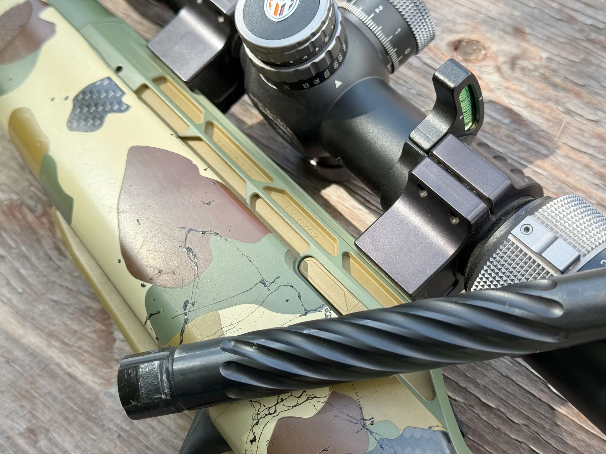 A gépi munkájuk mellett az Unkown Munitionsnak van egy kiváló Cerakota műhelye is. Számos szabványos minta közül választhat, amikor a Tikka jellemzőit választja, vagy valami egyedit is készíttethet velük. A bevonatok a puskacsövön, a bordázáson és az zárszerkezeten mind mesésen kivitelezettek, és néhány általános irányítással egy fantasztikus mintát és színsémát hoztak létre a puskámhoz.